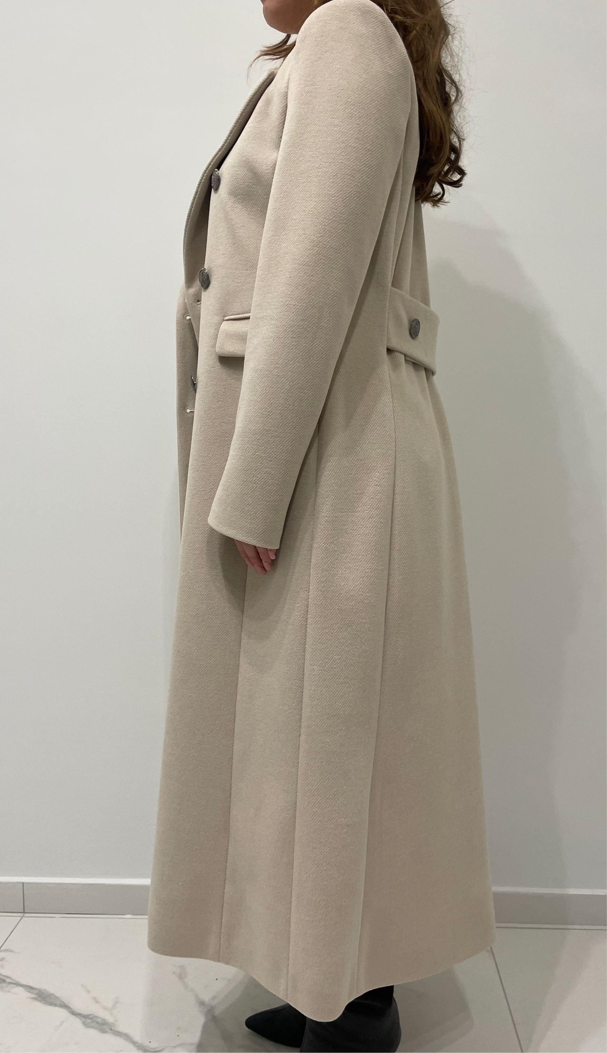 •LA LUNGHEZZA CHE SFIORA LE CAVIGLIE E IL COLLO A REVER AMPIO CONTRIBUISCONO A UN LOOK STRUTTURATO E RAFFINATO.